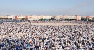 وقد غصت جنبات الطريق التي مر منها الموكب الملكي، بـ”حشود المواطنين والمواطنات الذين جاؤوا ليباركوا لأمير المؤمنين العيد السعيد، وهم يهتفون بحياة جلالته ويباركون خطواته”.
