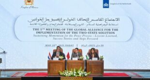 واغتنم هذه المناسبة للإعراب عن عميق امتنان رئيس دولة فلسطين، محمود عباس، للملك على مبادراته النبيلة والسخية من أجل التخفيف من معاناة الفلسطينيين في قطاع غزة من خلال إطلاق عملية إنسانية جديدة للمساعدات الطبية.
