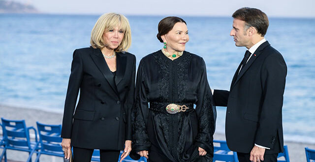 حضرت الأميرة للا حسناء، التي تمثل الملك محمد السادس في مؤتمر الأمم المتحدة الثالث للمحيطات، اليوم الأحد، بنيس، مأدبة عشاء أقامها رئيس الجمهورية الفرنسية، السيد إيمانويل ماكرون، والسيدة بريجيت ماكرون، على شرف رؤساء الدول والحكومات المشاركين في هذا المؤتمر.