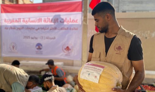 نفذت وكالة بيت مال القدس الشريف بمخيم البريج شرق غزة المرحلة الثالثة من حملة الإغاثة الإنسانية المغربية الموجهة للعائلات النازحة الأكثر احتياجا في القطاع، بتمويل من الجمعية المغربية لدعم الإعمار في فلسطين.