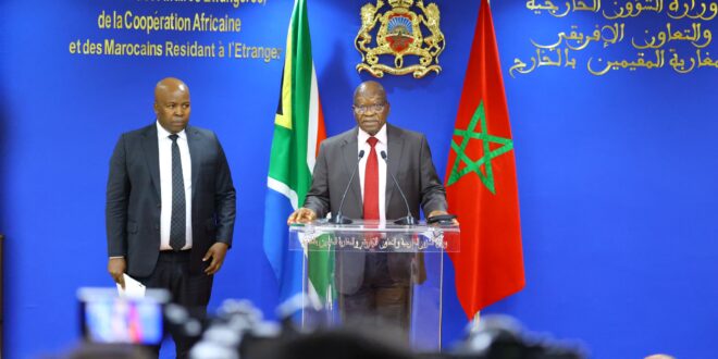 والتقى زوما يوم الثلاثاء 15 يوليوز المنصرم في العاصمة الرباط، بوزير الخارجية المغربي ناصر بوريطة، وتم خلالها رفع العلم الجنوب أفريقي.