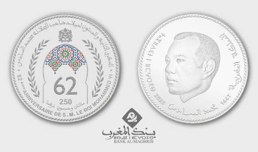 أصدر بنك المغرب قطعة نقدية تذكارية فضية من فئة 250 درهما، وذلك تخليدا للذكرى الثانية والستين لميلاد الملك محمد السادس.