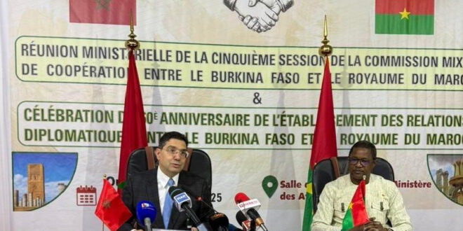 جاء التعبير عن هذا الموقف في البيان المشترك، الذي تم التوقيع عليه في ختام الدورة الخامسة للجنة المختلطة للتعاون المغربي – البوركينابي التي ترأسها في واغادوغو وزير الشؤون الخارجية والتعاون الإقليمي والبوركينابيين في الخارج، كاراموكو جان ماري تراوري، ووزير الشؤون الخارجية والتعاون الإفريقي والمغاربة المقيمين في الخارج، ناصر بوريطة.