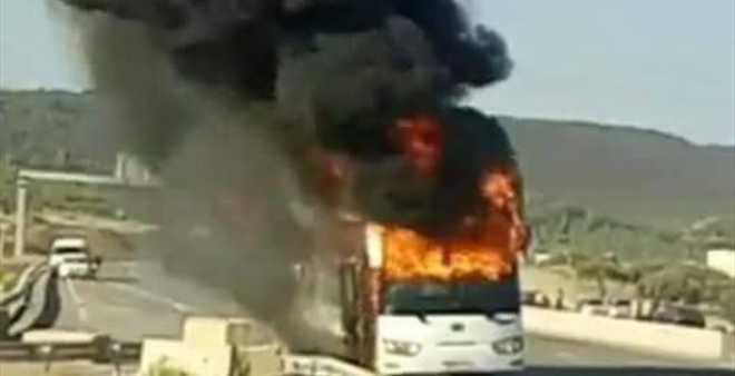 اندلع حريق بحافلة نادي وفاق سطيف، اليوم الأحد، خلال توجهها إلى مطار هواري بومدين لاستقبال أعضاء الفريق الجزائري العائد من الدار البيضاء.