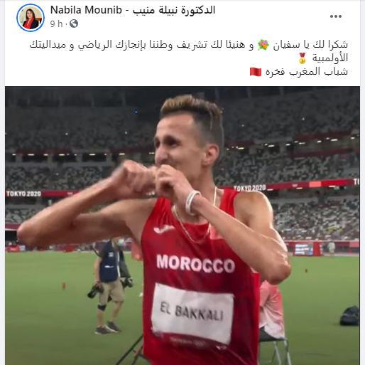 أشادت العديد من الوجوه السياسية والرياضية في المغرب بأداء سفيان البقالي، الذي تُوّج اليوم الاثنين، بالميدالية الذهبية في سباق 3000 متر موانع، في منافسات ألعاب القوى ضمن دورة الألعاب الأولمبية (طوكيو 2020).