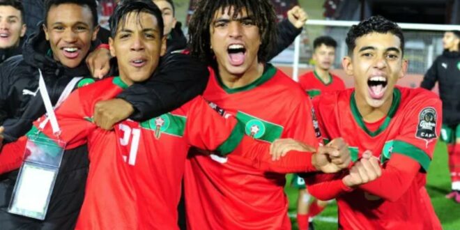 تأهل المنتخب المغربي لكرة القدم لأقل من 17 سنة إلى الدور نصف النهائي لكأس أمم إفريقيا لهذه الفئة، عقب تغلبه على نظيره من جنوب إفريقيا بنتيجة 3-1، في المباراة التي جمعتهما اليوم الخميس على أرضية ملعب البشير بالمحمدية، لحساب ربع نهائي هذه المسابقة القارية.