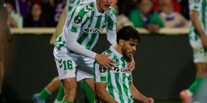 وأحرز البرازيلي أنتوني هدف المباراة الأول لريال بيتيس في الدقيقة 30، من ركلة حرة مباشرة بشكل رائع، لكن فيورنتينا عاد بسرعة ليحرز هدفين في أقل من 8 دقائق عن طريق الألماني روبن غوسينس في أواخر الشوط الأول.