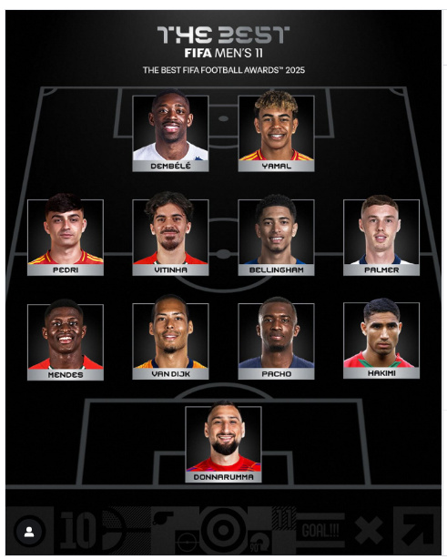 حجز الدولي المغربي أشرف حكيمي لنفسه مكانا ضمن تشكيل أفضل 11 لاعبا للموسم الكروي 2025، وذلك خلال حفل توزيع جوائز الأفضل “ذا بيست” الذي أقيم في العاصمة القطرية الدوحة، مساء اليوم الثلاثاء.